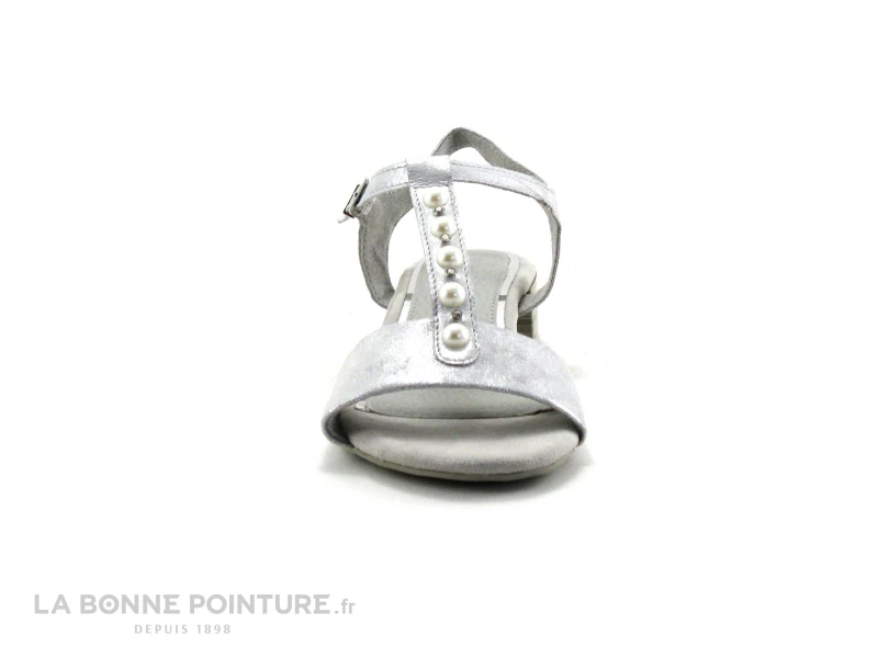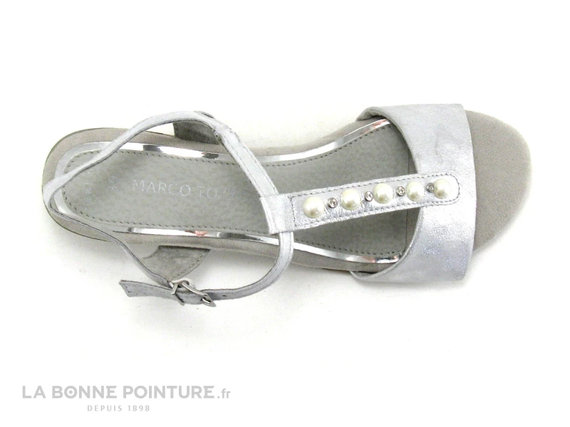 Cuir métallisé et petites perles pour ces ravissants nu-pieds en cuir argent Marco Tozzi 2-28213-22, des sandales mode Femme à petit prix pour l’été !