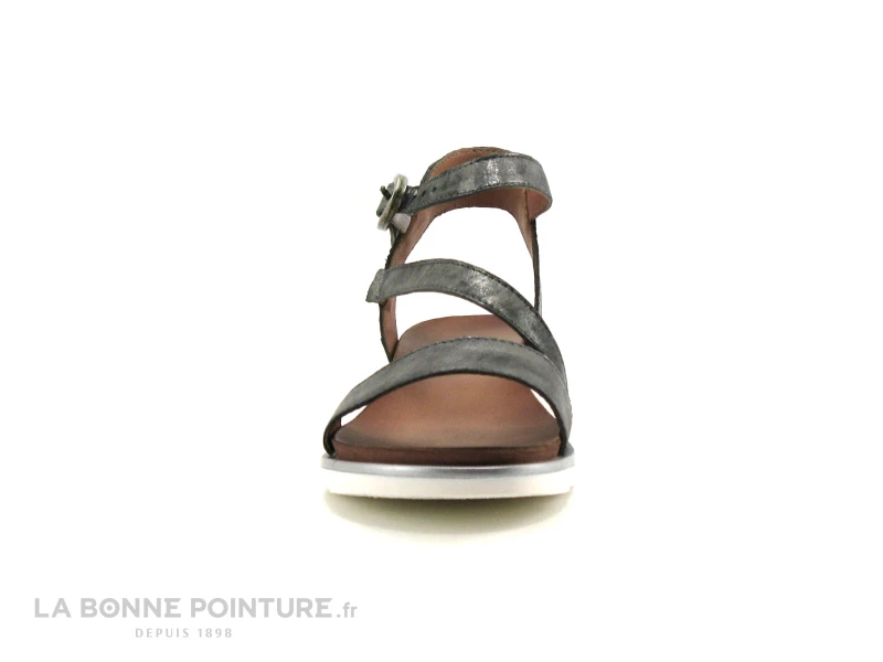 Ce nu-pieds Femme est en cuir gris métal (mouse), avec une lanière en biais sur le milieu.
