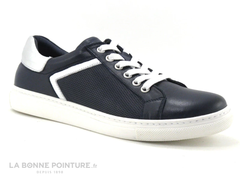 Pour vous accompagner au quotidien, ces belles baskets Femme en cuir bleu marine Moran’s Espace tout en cuir !