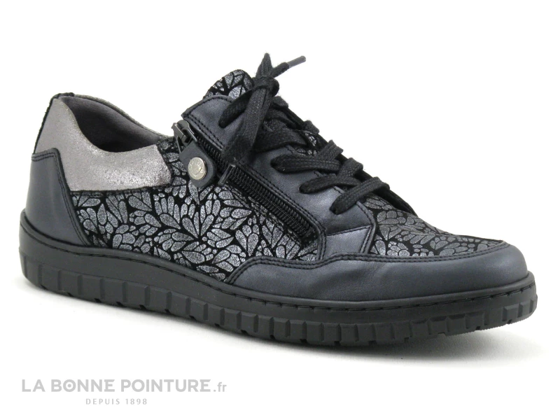 Fantaisie sans en faire trop, ces jolies baskets de ville Femme en cuir noir et argent au très bon rapport qualité / prix !