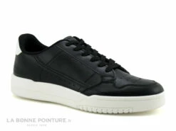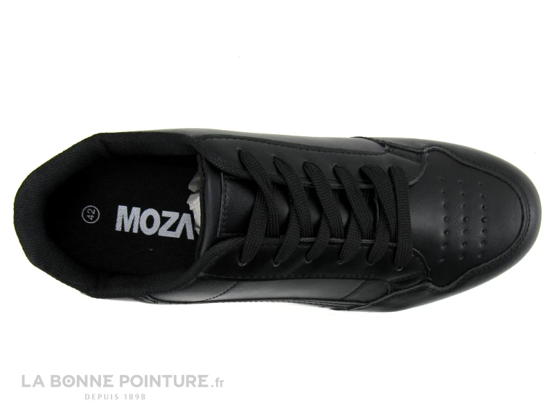 Cette basket de ville Homme pas chère Moza-X B850830 est en simili cuir noir, avec une partie blanche à l’arrière.