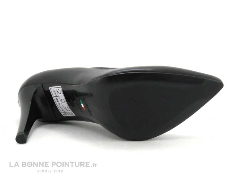 Ce superbe escarpin pointu NeroGiardini est fabriqué en Italie, avec un beau cuir lisse noir.