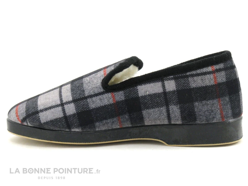 Ce chausson Homme Ouf Claret est en textile écossais gris, avec une touche de rouge et le pourtour noir.