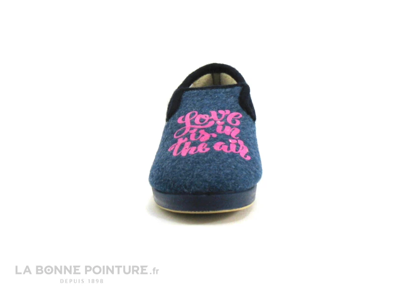 Ces jolis chaussons Femme Ouf SUGNY sont en textile molletonné bleu jean, avec le pourtour bleu marine.