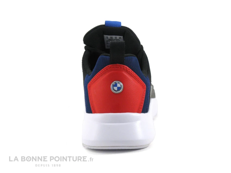 Ces baskets de la ligne MotorSport Homme Puma sont en maille noir avec un empiècement bleu et rouge à l’arrière. Le logo BMW s’affiche en relief sur l’empiècement.