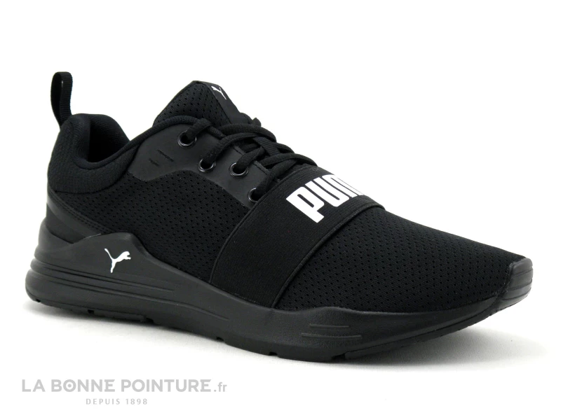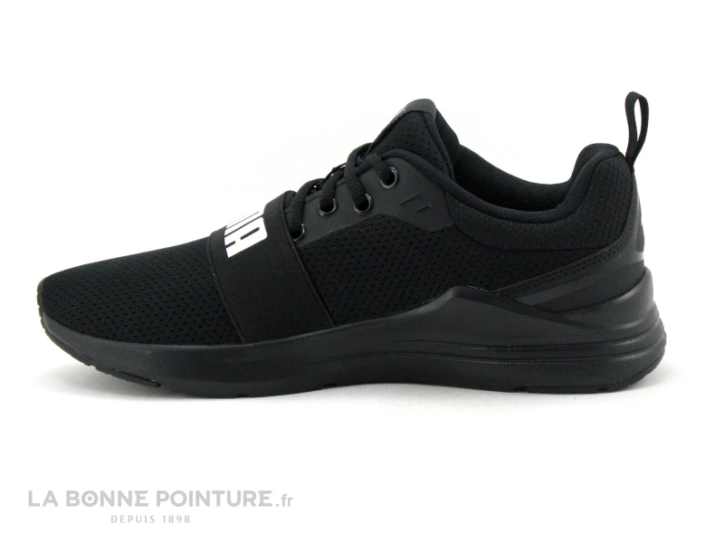 Cette belle chaussure de sport Homme Puma est majoritairement en maille respirante noire, avec une petite languette à l’arrière qui aide à enfiler et retirer aisément la basket.