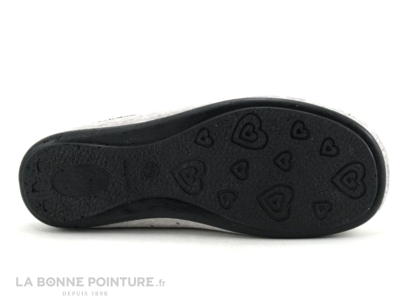 La semelle de marche des pantoufles fantaisie Femme pas chères Selkis est flexible et légère, noire avec des petits coeurs en-dessous.