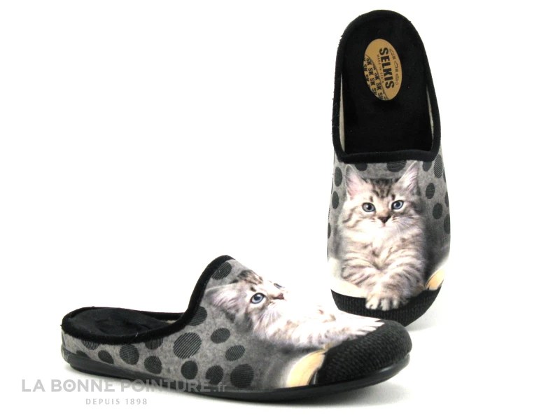 Irrésistibles, ces jolies pantoufles Femme avec chat Selkis 22357 !