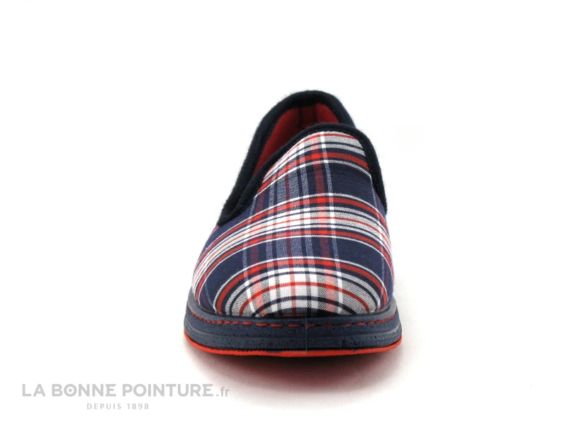 Ces charentaises Homme Semelflex Super Xavier sont en tissu écossais, aux tons de bleu marine, de rouge et de blanc.