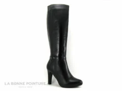 La semelle de marche des bottes noires est assez souple, avec un petit patin d’environ 1 cm et un talon haut et fin d’environ 9.5 cm…