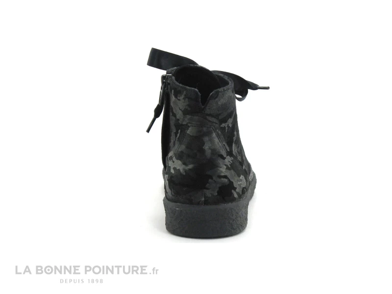 Cette chaussure montante originale est fabriquée avec un beau cuir imprimé camouflage noir et kaki métallisé.