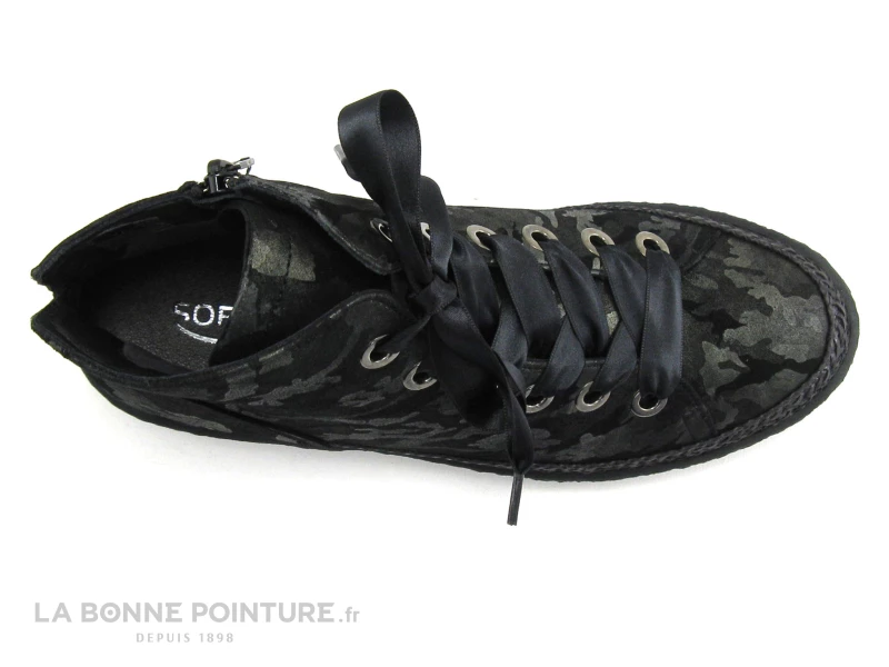 Les sneakers montantes Femme en cuir noir et camouflage kaki SoftWaves 7.01.46, des baskets montantes de grande qualité au meilleur prix !