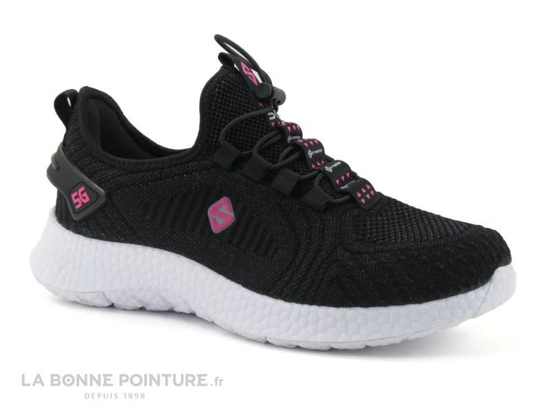Cette basket slip-on Femme Streeter est en textile maille noir, avec un peu de rose.