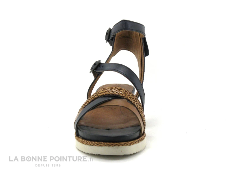Ce nu-pieds mode Femme Tamaris combine du bleu marine et du marron camel, avec une lanière fantaisie aspect tressé sur le dessus.