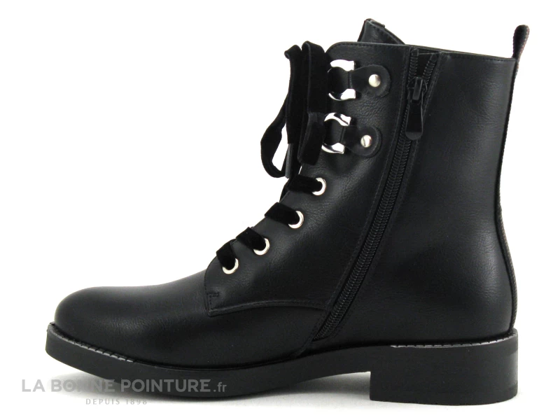Le lacet ruban en velours noir apporte une jolie finition au modèle, il traverse 4 oeillets argentés et 2 anneaux.
