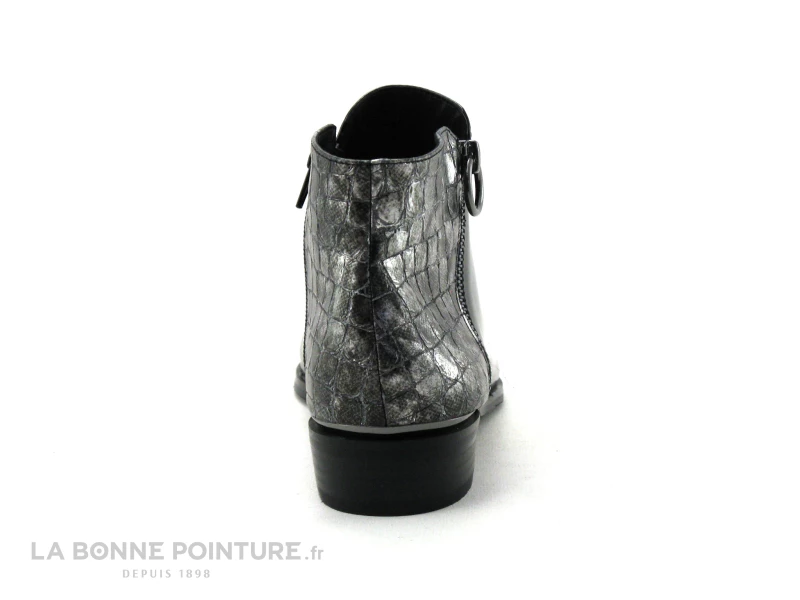 Toutes les fans de mode vont être conquises effectivement par cette belle imitation caoutchouc noire avec contrefort métallisé argent à impressions croco !