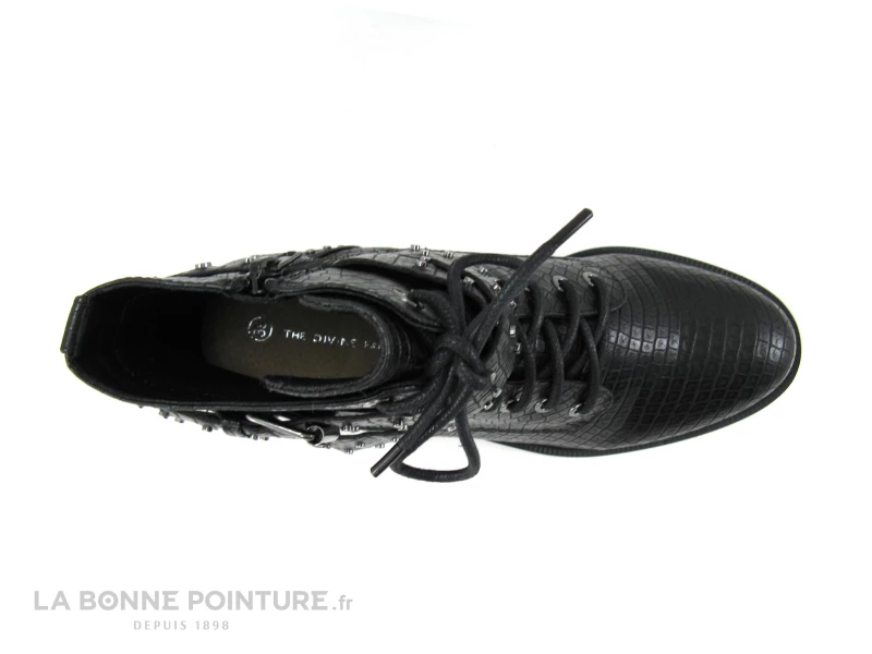 Classe, tendance et pas chères, ces belles bottines à lacet serpent noir The Divine Factory QL4513 !