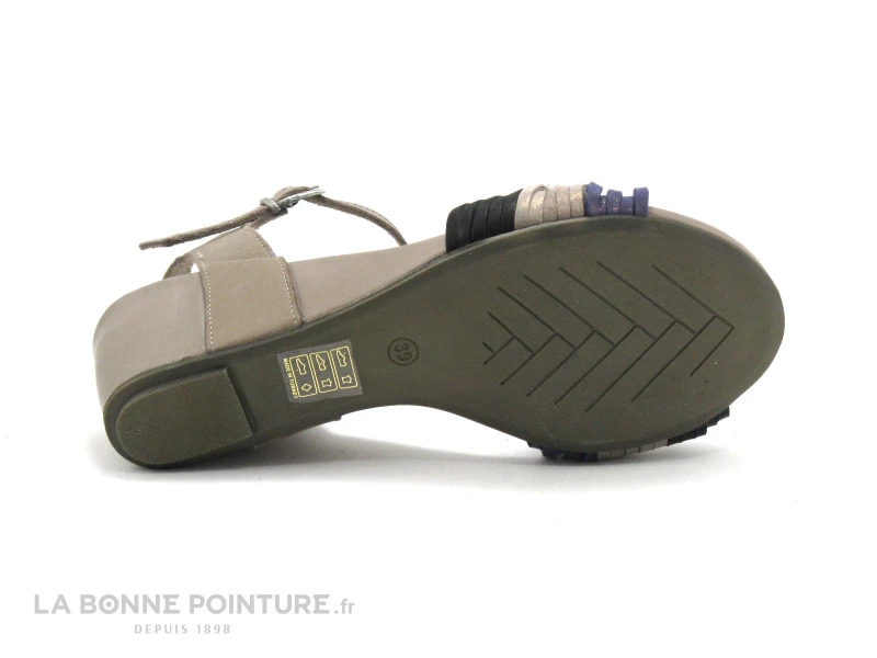 On craque Ă©videmment pour les fines lanières entrecroisĂ©es sur le devant, en cuir mĂ©tallisĂ© bleu marine, noir et beige… qui donnent du chic et du charme Ă cette chaussure Femme Tiurai !