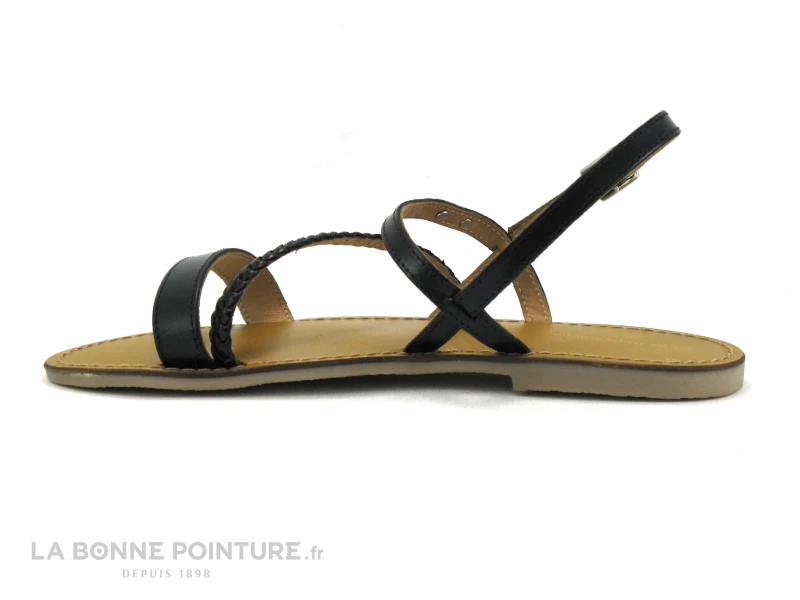 La semelle de marche des nu-pieds noirs TropĂ©ziennes Batresse est fine et lĂ©gère, avec un petit talon d’env. 1.2 cm.