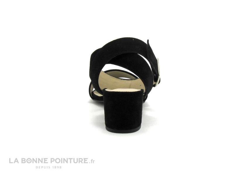 Ce nu-pieds Femme est en cuir velours noir, avec deux larges brides croisées qui enlacent la cheville.