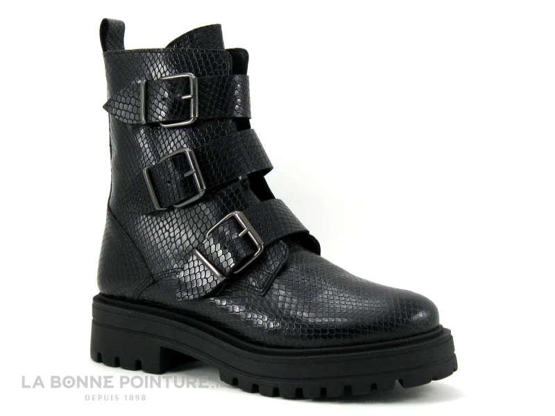 Les 3 brides noires sur le devant de la chaussure donnent certes du style, et permettent aussi d’ajuster la bottine à votre morphologie (chacune se règle sur 3 positions avec une boucle argentée).