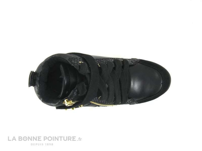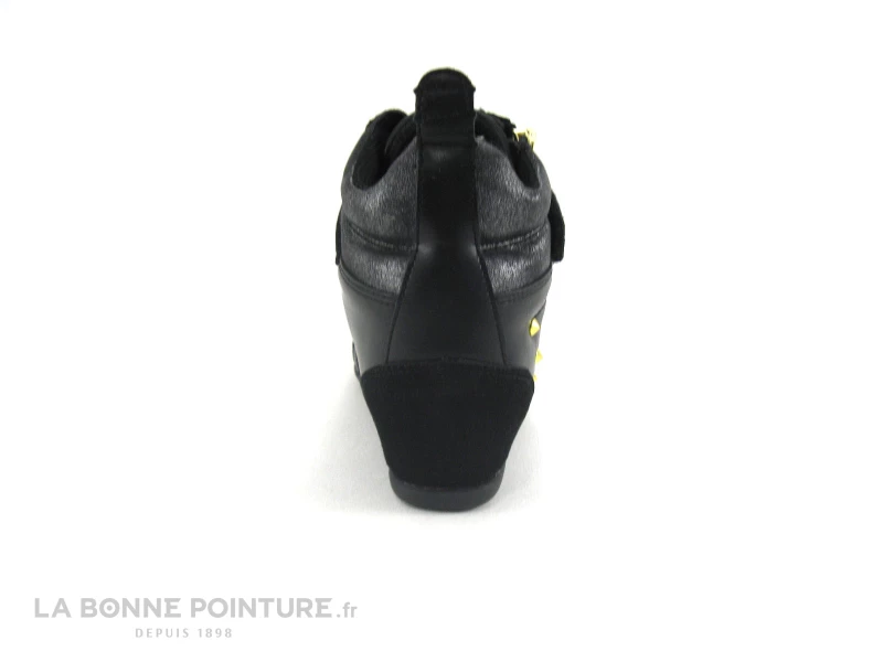 Le lacet noir se faufile à travers 6 oeillets dorés pour ajuster la basket compensée enfant.