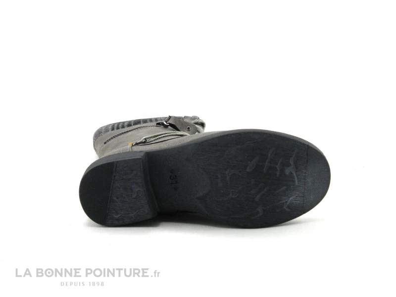 Cette botte à lacet fille Wipop est en simili cuir gris nuancé, avec une partie à carreaux noirs et gris sur le haut.