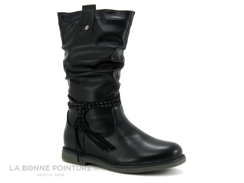 Ces jolies bottes fille à petit prix Wipop Duclair sont en simili cuir noir, avec la tige joliment plissée.