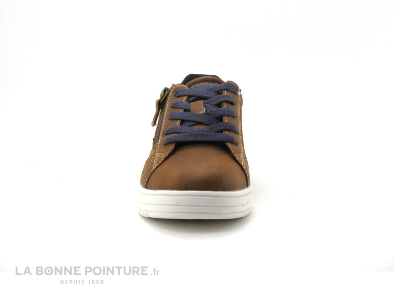 Cette paire de chaussures garçon à petit prix Wipop Ouriel est marron nuancé, avec un peu de bleu marine à l’arrière.